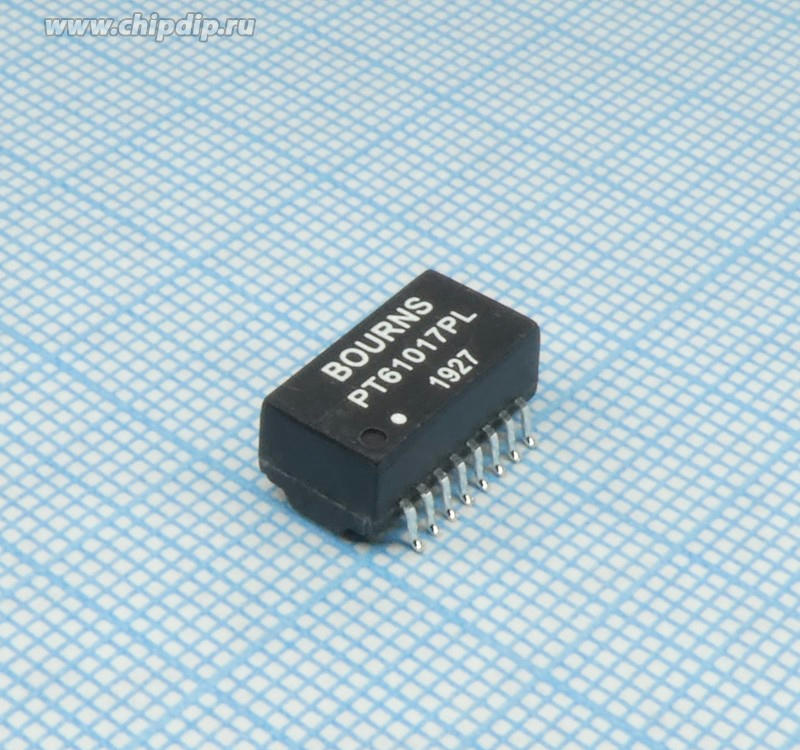 Телекоммуникационный трансформатор 2(1CT:1CT) первичная обмотка 0.6Ом вторичная обмотка 1.1Ом, 16 загнутых выводлв для поверхностного монтажа